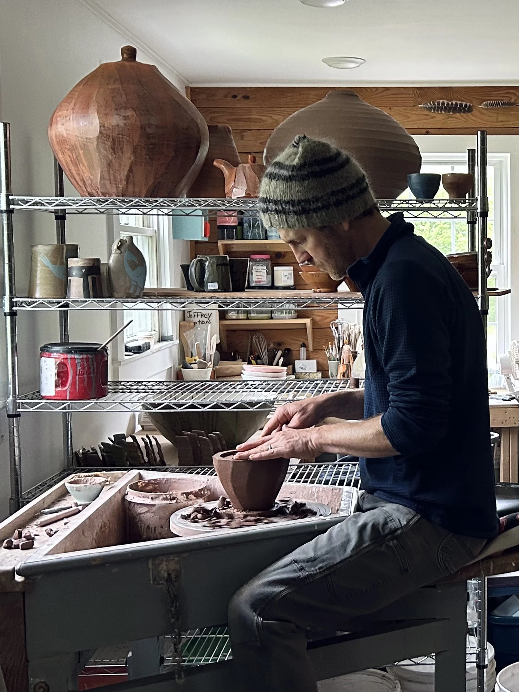 Jeffrey is a lifelong Mainer, potter, and educator who runs the clay studio at Waterville Creates. He earned his BFA in Ceramics from the University of Southern Maine, then spent a year at Watershed Center for the Ceramic Arts making pots and playing badminton. After a recurring toe injury sidelined his badminton career, he relocated to Western Massachusetts, where he recovered and completed a three-year apprenticeship at Stonepool Pottery. Afterwards, Jeffrey returned to the great state of Maine. He has a deep love for handmade objects, dogs, music, and plants.